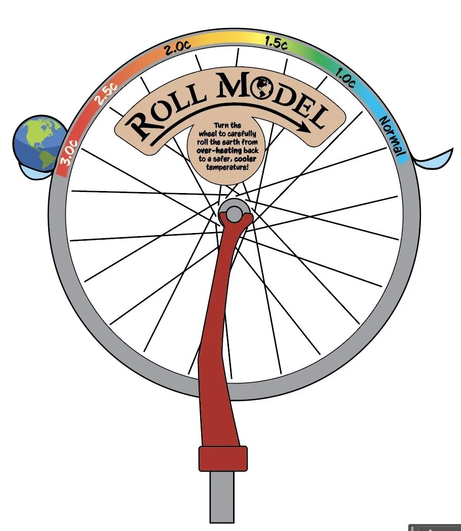 Can you roll the earth back in time to a normal temperature? It’s 2050 and we’re sitting at 3.0c above per-industrial temperatures. Tilt the bike wheel and gently roll the earth along the top, balancing speed and rotation. It’s delicate balance to coax the world back to normal! Built from up-cycled bike parts, this challenging games is as fun to watch as it is to play.